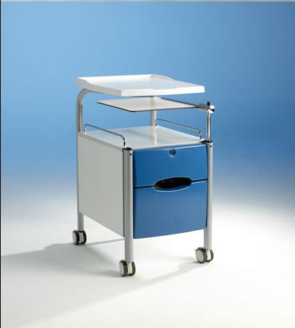 Благодаря сдвоенным колесам тумбочка легко перемещается. Тормоза надежно фиксируют тумбочку на месте, замок ящика входит в стандартную комплектацию. Также имеется вариант тумбочки без столика для чтения и приёма пищи. Для специальных потребностей можно трансформировать тумбочку при помощи широкого ассортимента дополнительных принадлежностей. Рама прикроватной тумбочки Ada выполнена из стали с эпоксидным покрытием, верхние и боковые панели – из меламина светло-серого цвета, цвета бука или березы. Лицевые панели ящика имеются в трех цветовых решениях. Легкие пластиковые ящики легко чистятся.